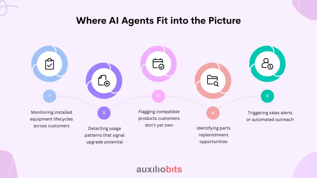 When AI agents learn from existing data, they can keep looking at equipment, service records, usage trends, and lifecycle information to find money-making chances that human teams would likely overlook.