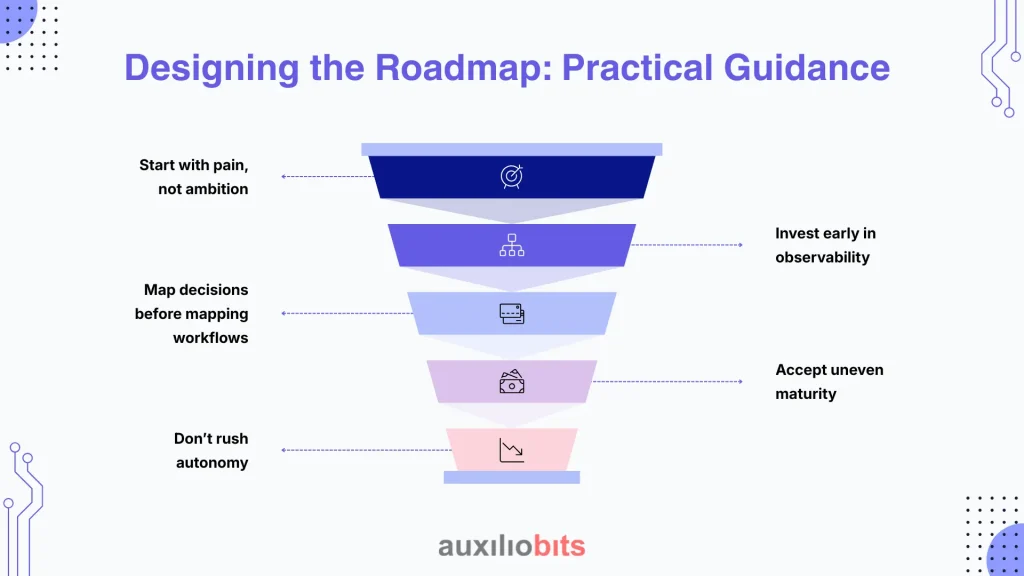 - Invest early in observability: If you can’t explain why a system suggested something, autonomy is off the table.