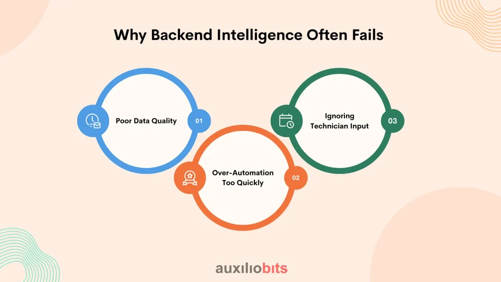 These variations complicate pattern detection. Cleaning and standardizing service data is often the most time-consuming part of implementing backend intelligence.