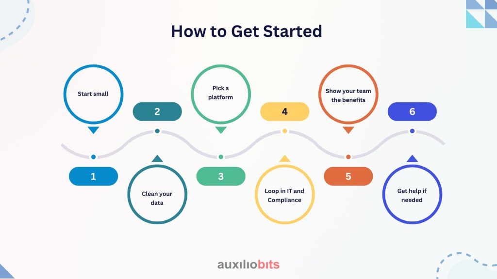- Get help if needed: Companies like Auxiliobits can customize AI tools for your workflow so the transition is smooth.