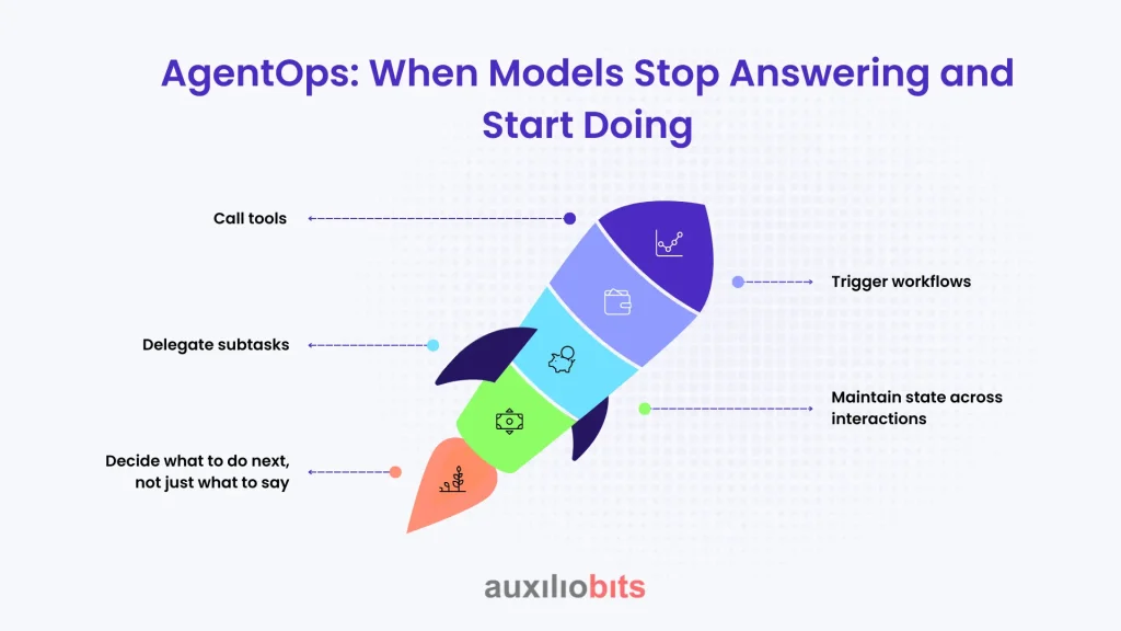 Still, even mature LLMOps setups assumed something important: the model was responding, not acting. It generated text, recommendations, and summaries. Decisions remained elsewhere.