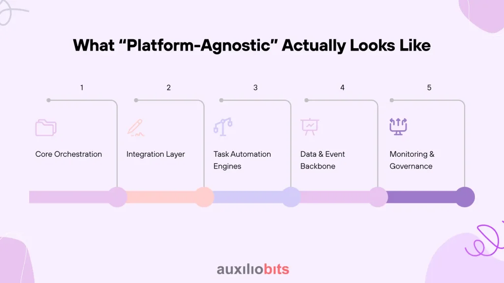 - Agnostic ≠ chaotic. A well-designed, platform-neutral stack has clear layers—Orchestration, Integration, Automation Engines, Data Backbone, and Governance—working in harmony.