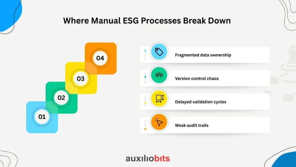 - Manual ESG processes fail under scrutiny due to weak audit trails and fragmented data.